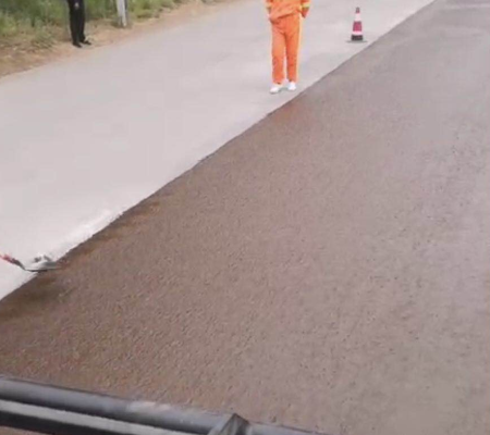 (2)改性慢裂快凝型乳化瀝青用于預(yù)防性養(yǎng)護(hù)的改性稀漿封層施工的用稀漿封層車進(jìn)行施工。